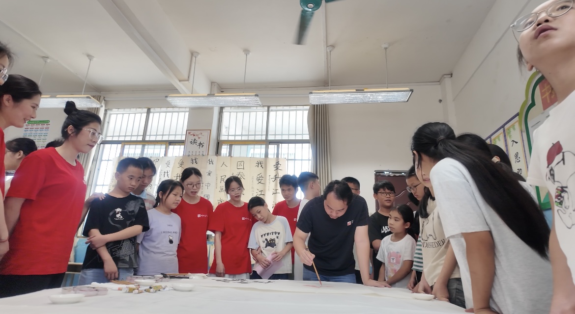 丹青绘志,励志笃行;大手牵小手,美育润心田。2025年暑期“大手牵小手”爱心帮教文明实践志愿服务活动,是广西艺术学院中国画学院/漓江画派学院“丹青励志”志愿服务队深入基层、服务社会、践行青年担当的生动实践。师生志愿者们用专业所长服务乡村美育,用艺术温暖童心,在奉献中丰富了阅历,增长了才干。未来,学院将继续引导青年学子胸怀“国之大者”,以笔墨丹青讲好中国故事,传播中华优秀传统文化,让青春在党和人民最需要的地方绽放绚丽之花!